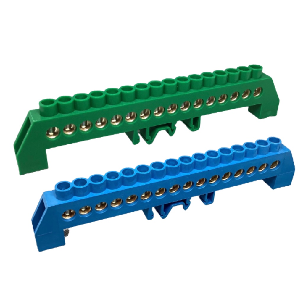 Barramento Neutro e Terra Barramento De Distribuição Verde e Azul 12 conexões 80A