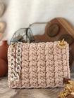 Bolsa Croche em Fio de Malha Modelo Julieta Ponto Trama cor Bege Claro