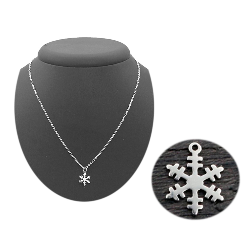 Gargantilha Colar banhado mini floco de neve em aço Cirúrgico prata pode molhar não fica preto feminino masculino