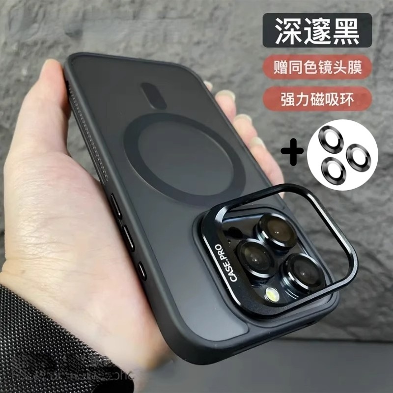 Suporte Cinzento Fosco De Titânio Cinza/Lente De Proteção Metálica/Filme De Absorção Magnética anti-Queda Compatível Para iPhone 15 14 13 12 11 Pro max 15Plus Caixa Acrílica