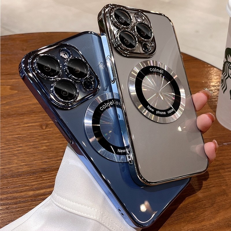 Caixa Magnética Transparente Compatível Para iPhone 15 14 13 12 11 Plus Pro Max Capa De Proteção Da Lente Câmera Do Telefone