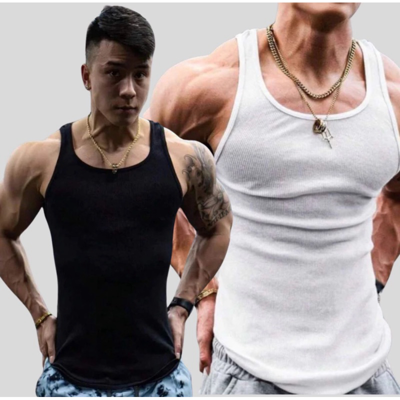 Regata Masculina Academia Justa Canelada Ribana Estilo Americana HIP HOP Rapper Camiseta algodão Basica Branca Preta