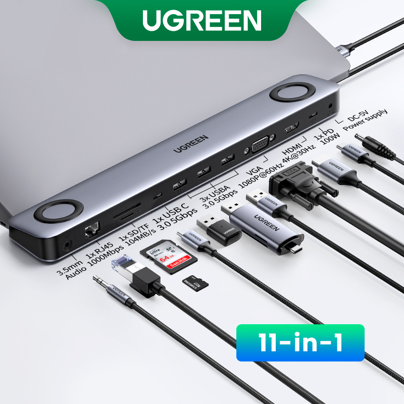 UGREEN 11 Em 1 Estação De Ancoragem USB C HUB Para HDMI 4K VGA RJ45 PD 100W SD TF 3.5 MacBook Pro Air M1 Dock