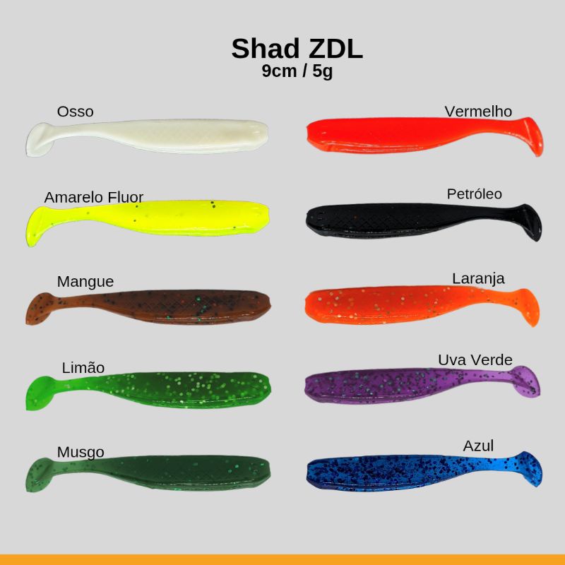 Isca Artificial Shad ZDL 4 unidades 9cm - Traíra, tucunaré, dourado, cachorra.