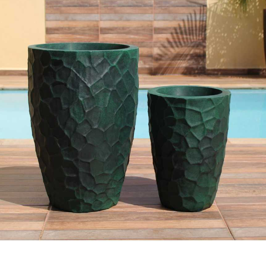 Kit 2 Vasos Planta flor Texturizados Redondo Decorativo de Polietileno Cone N°1 e N°2