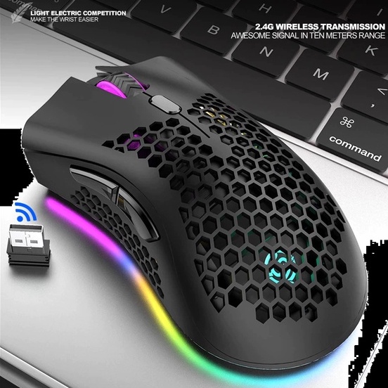 Mouse Gamer Sem Fio 2,4g 3200dpi Recarregável Luz Rgb