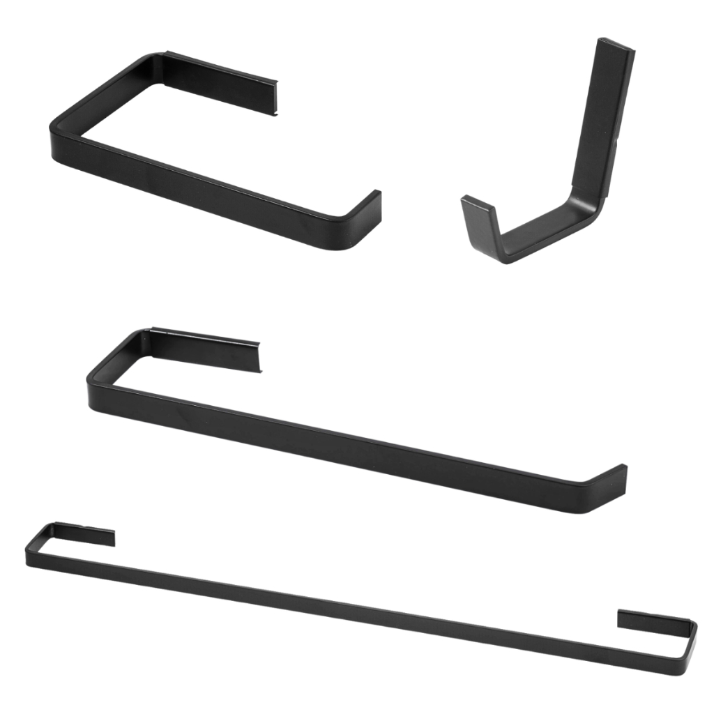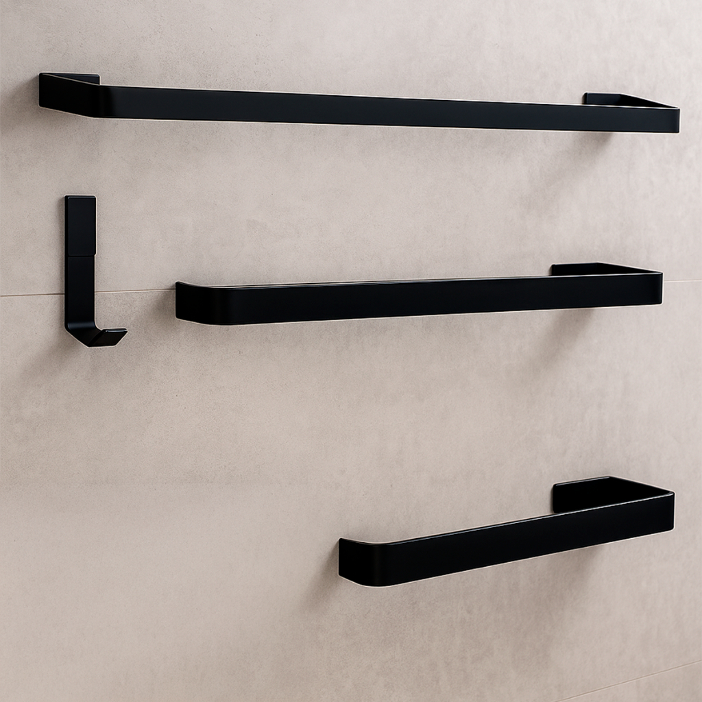 Kit Acessórios Banheiro Lavabo Quadrado 4 Peças Alumínio Preto Fosco Black Matte Anti Ferrugem
