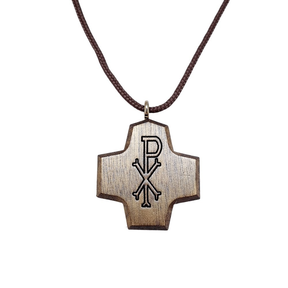 Cordão Pescoço com Cruz Madeira e Jesus em Metal