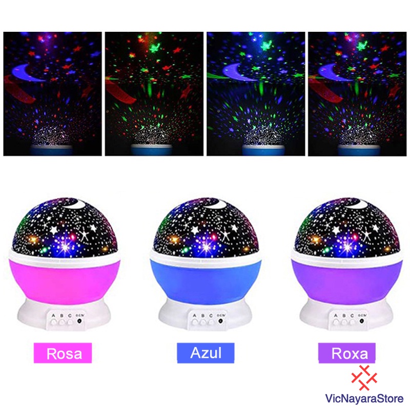 Luminaria Mini Com Projeções Espaciais Ou Reflexos Abajur Infantil Céu Estrelado Lua Usb Compacta Iluminação Colorida 360º