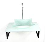KIT CUBA DE VIDRO QUADRADA 10MM COM TAMPO 50CM BRANCO FULL E SUPORTE PRETO