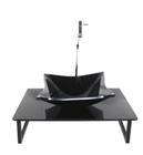 Kit cuba de vidro quadrada 10mm tampo 50cm preto full com suporte torneira valvula