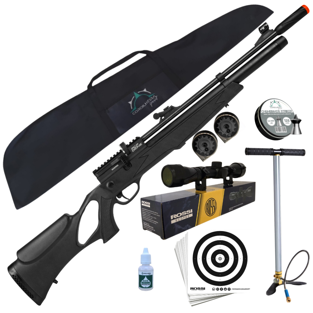 CARABINA DE PRESSÃO ROSSI DIONE PCP 5,5MM + 01 BOMBA ROSSI + 125 CHUMB ROSSI 5,5MM + 01 LUNETA ROSSI