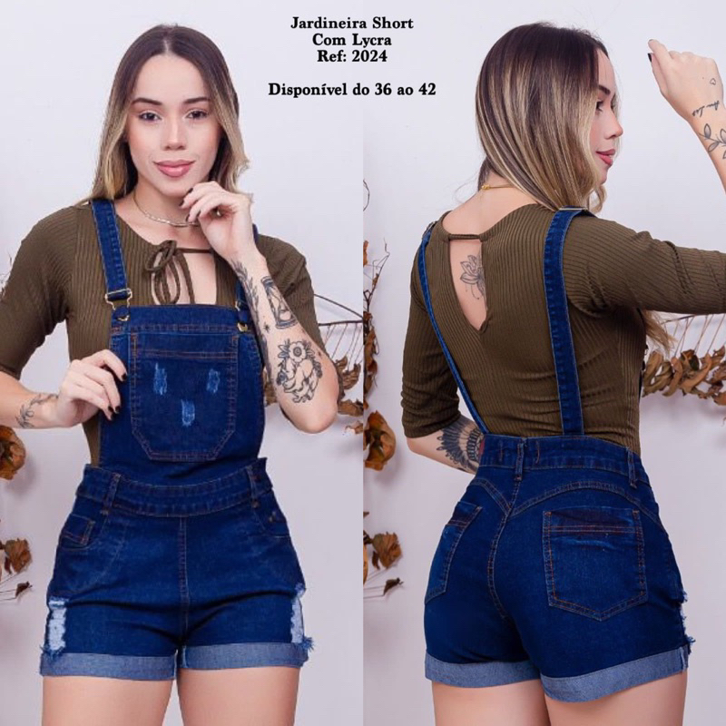 Jardineira Feminina,Macaquinho Short Jeans Curto