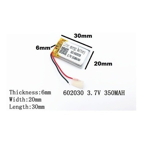 Bateria 602030 2 fios 3,7v 350mah 6mm X 20mm X 30mm