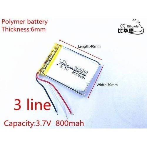 Bateria Gps C/ 3,7v 800mah 6mm X 30mm X 40mm com 3 fios 603040