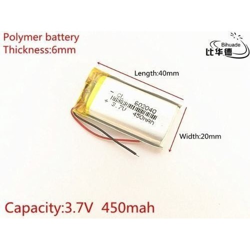 Bateria 3,7v 450mah 6mm X 20mm X 40mm 602040 2 Fios