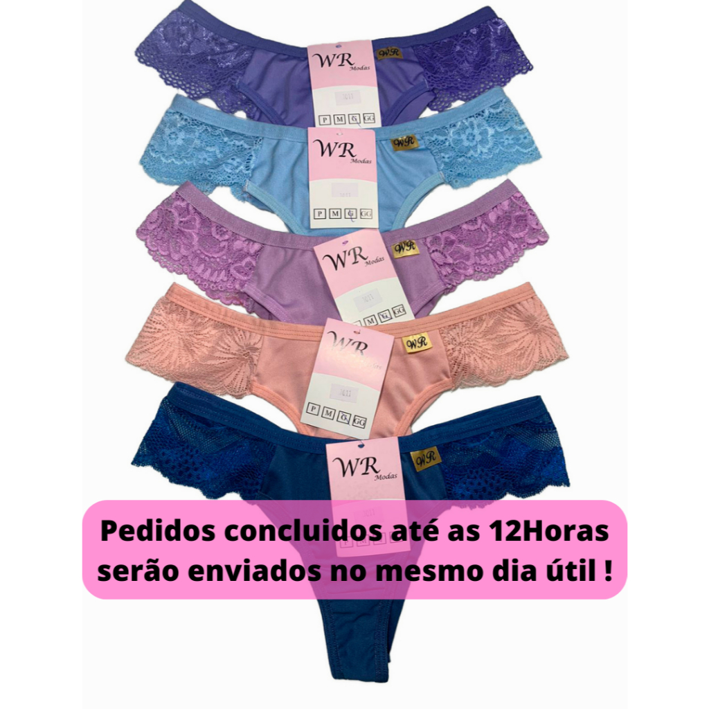 kit 5 calcinhas fio dental de renda conforto frente e fundo em poliamida forro 100% algodão