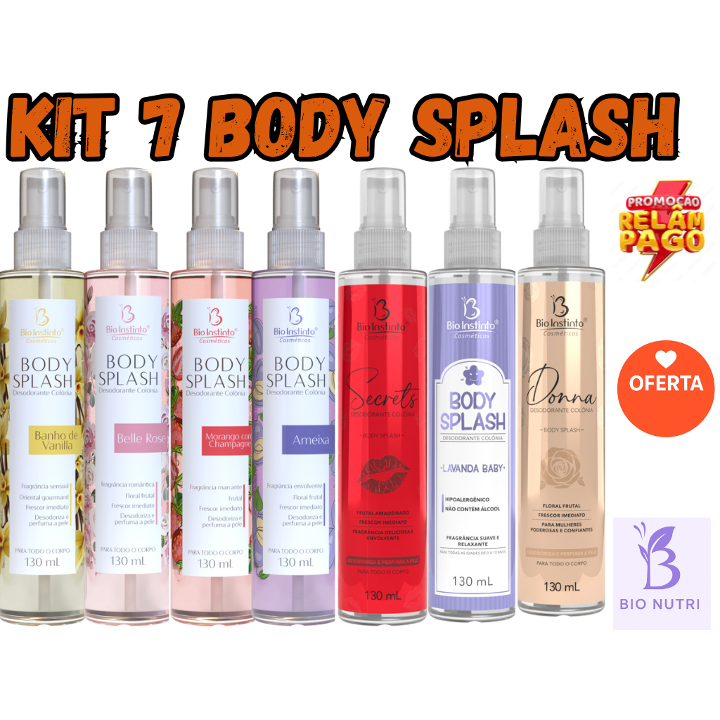 🔥 KIT 7 Body Splash Feminino Perfume Corporal 💖 Fragrâncias irresistíveis para deixar sua pele perfumada e refrescante.