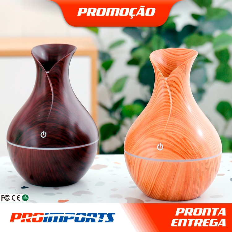 Umidificador de Ar e Aromatizador de Ambiente Tipo Madeira Difusor de Óleo Essencial Ultrassônico 130ml RGB Portátil USB