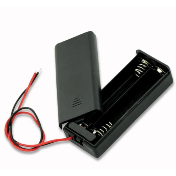 Suporte Para 2 Baterias 18650 em Serie Com Tampa e Botão Liga-Desliga