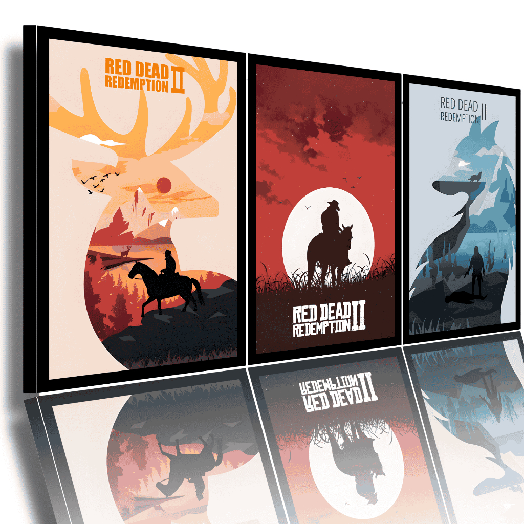 Conjunto 3 Quadros Trilogia Red Dead Redemption 2 Rockstar