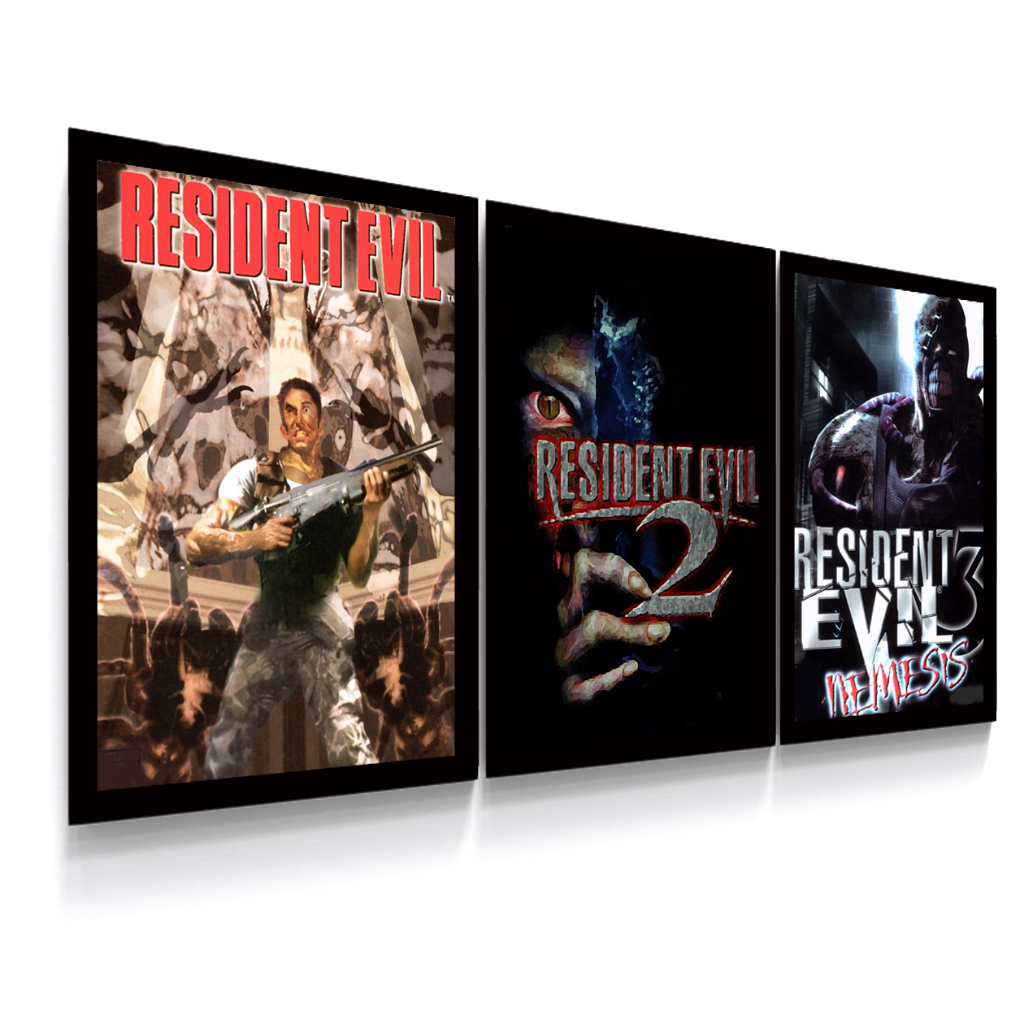 Conjunto 3 Quadros Decorativos Poster Trilogia Resident Evil Playstation 1 A3 Tamanho 42 x 90 cm Gamer Decor, Quadro Decorativo, Jogos Retro, Gamer Art, Decoração Geek, Capcom, Vintage Gaming, Trilogia Resident Evil, Coleção Resident Evil, Wall Art, Game