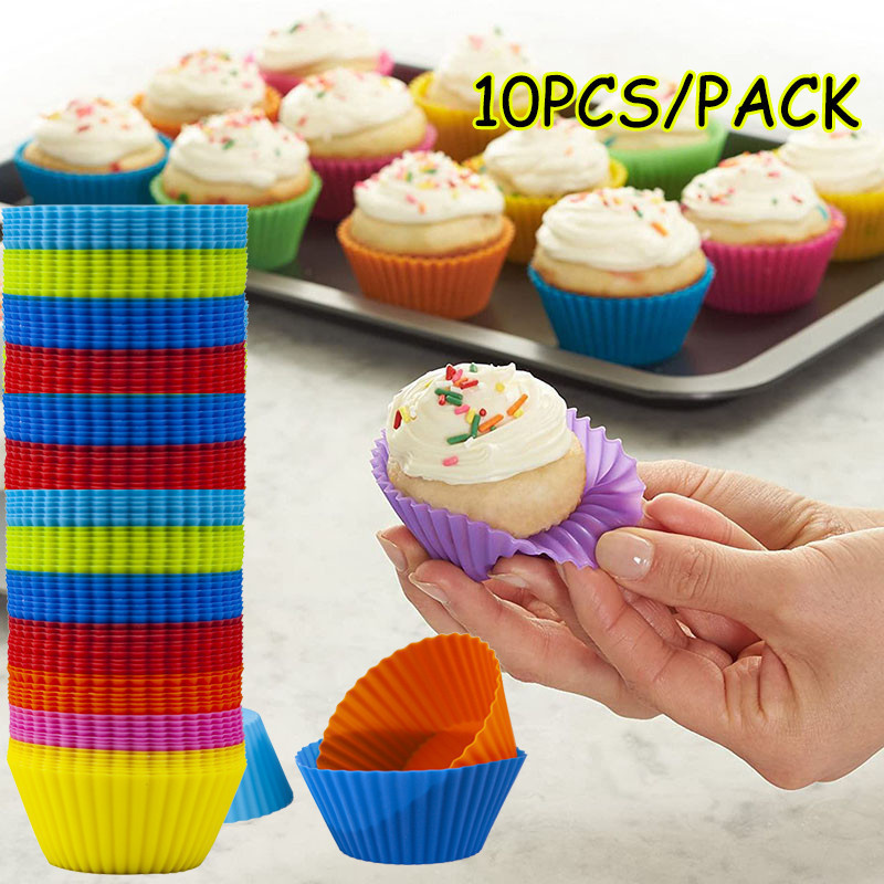 10pcs/pack De Molde De Silicone Para Bolos Muffin Redondo Cozinha Ferramenta Decoração De Diy