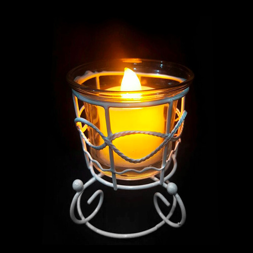 Castiçal Aramado De Ferro Branco Decorativo + Vela Led