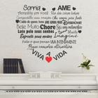 Adesivo Decorativo de Parede Frase Motivação Coração Sorria Viva Ame a Vida