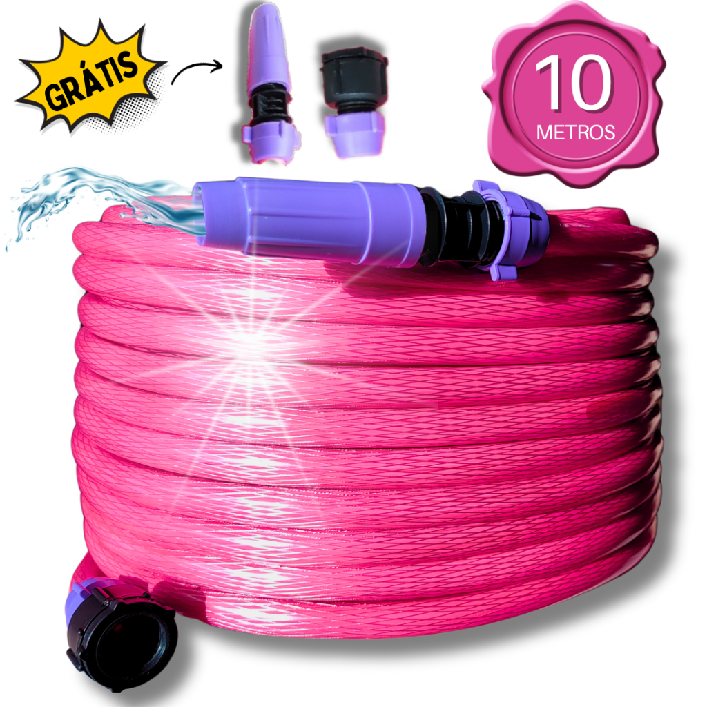 Mangueira de Jardim 10 Metros Rosa Pink Trançada Reforçada e Flexível