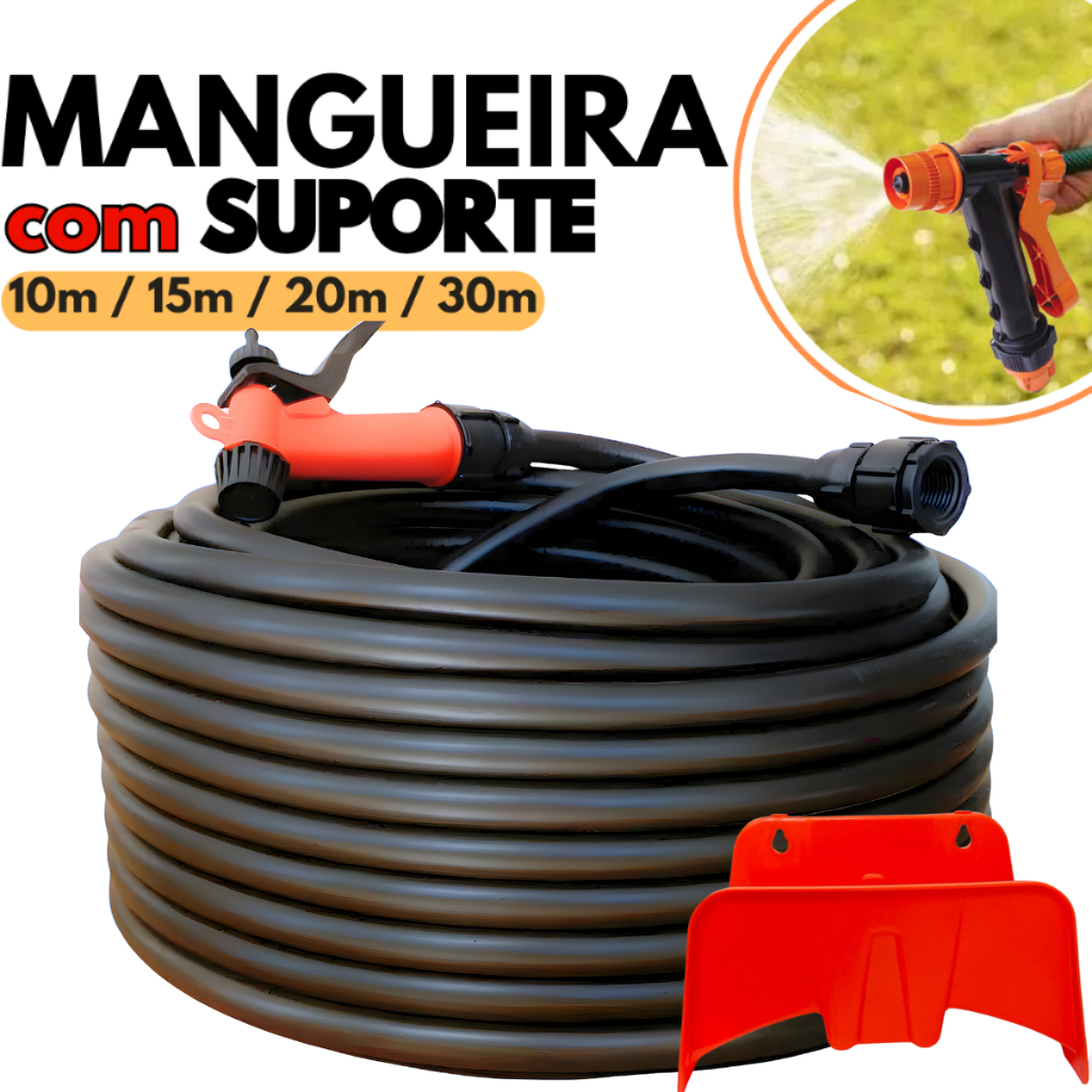 Mangueira Jardim 10, 20, 30 Metros Resistente Flexivel Reforçada Trançada com Esguicho e com Conector Super Malha de Nylon Dupla Camada Pronta para Usar Kit com Suporte de Parede Para Guardar Enrolar Enrolador