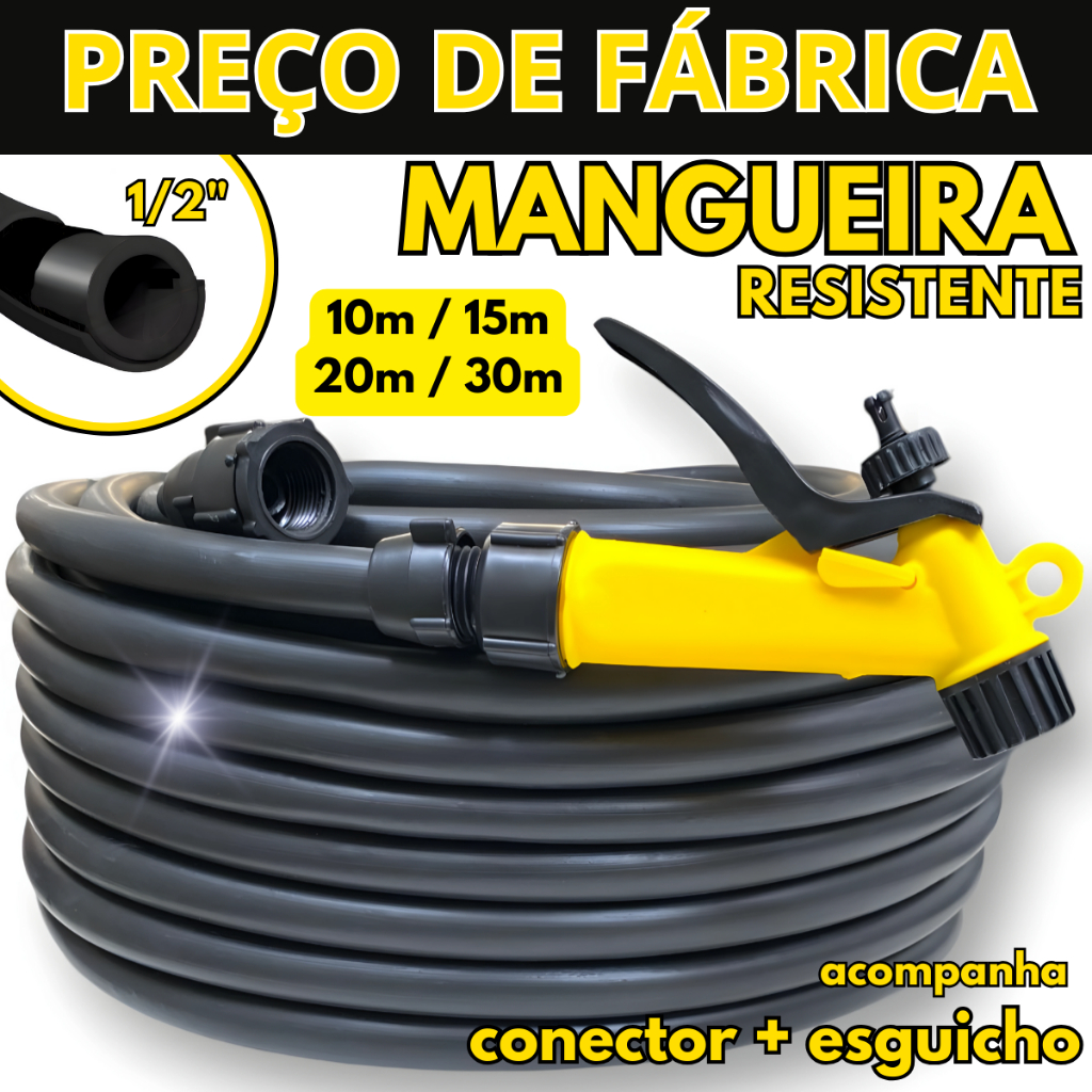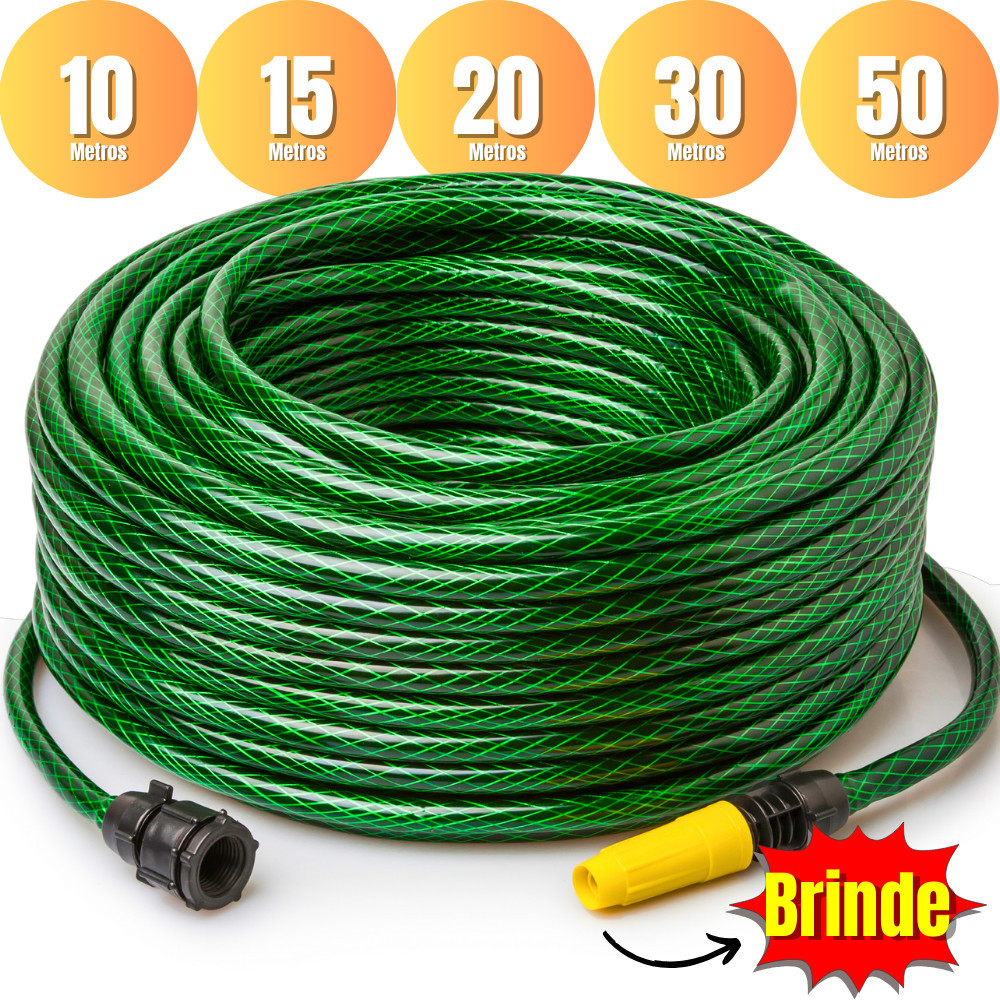 Mangueira de Jardim 10, 15, 20, 30, Metros Grossa 1/2'' Resistente Reforçada Flexivel Kit com Esguicho e Conector
