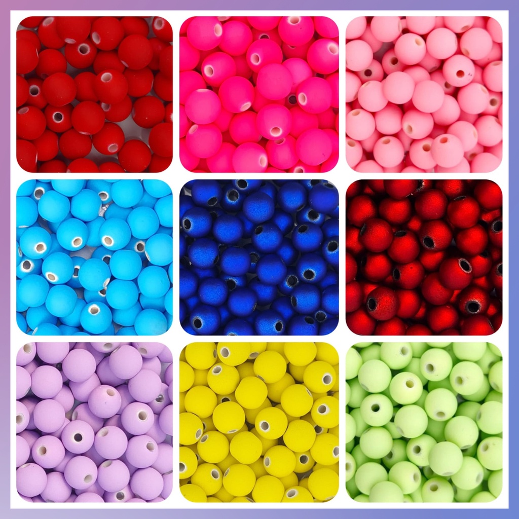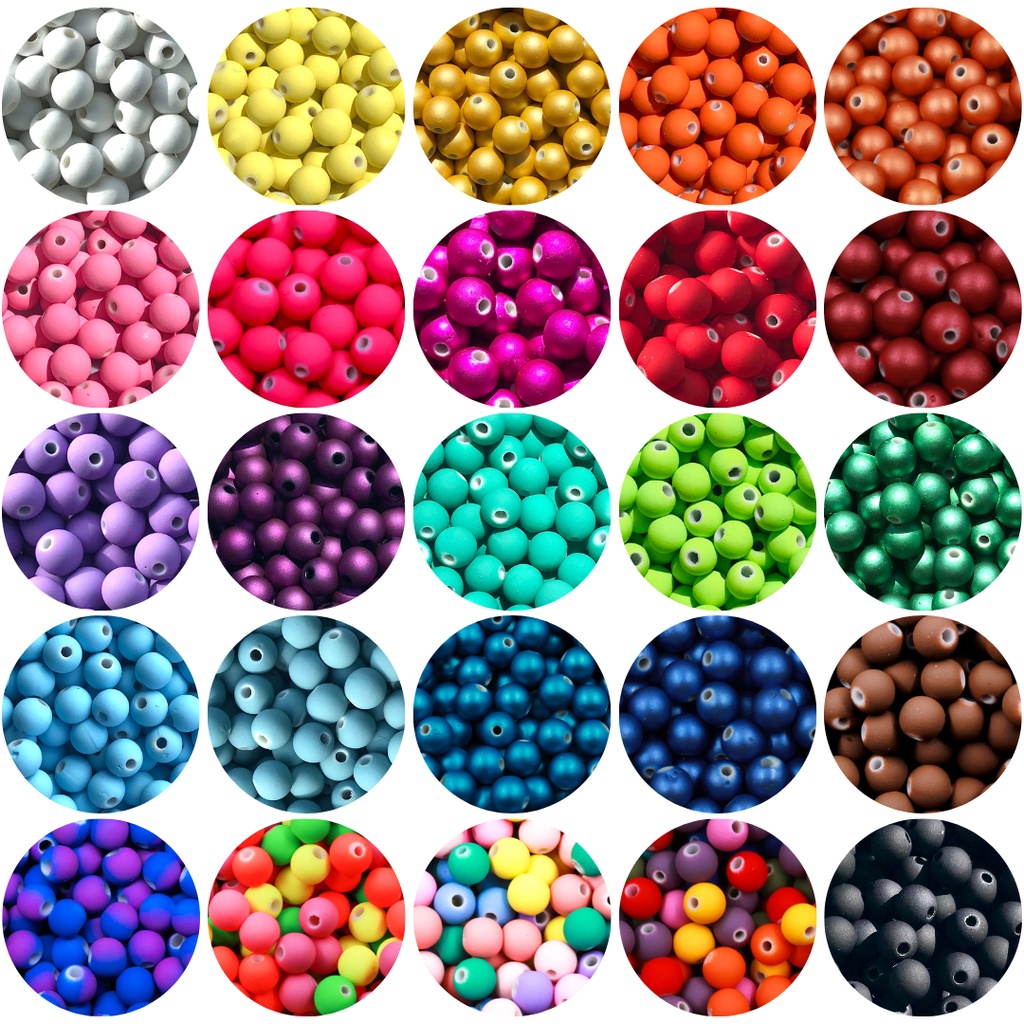 Miçanga Bola Emborrachada Passante Metalizada Cintilante 8mm 100g 360 Pçs Terços Artesanatos Várias Cores