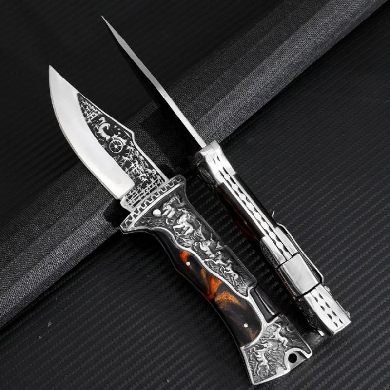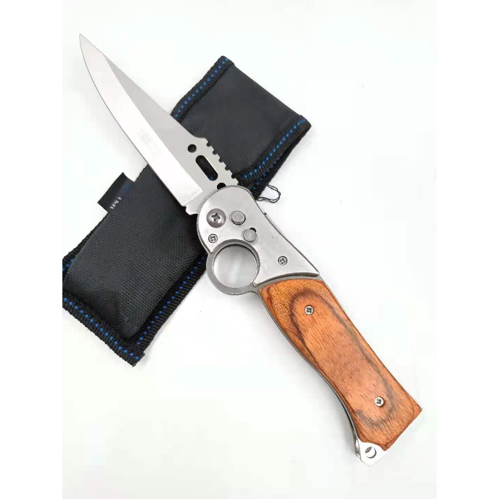 Canivete Multiuso de Bolso Cabo de Madeira Automático com Lanterna Saque Rápido D12