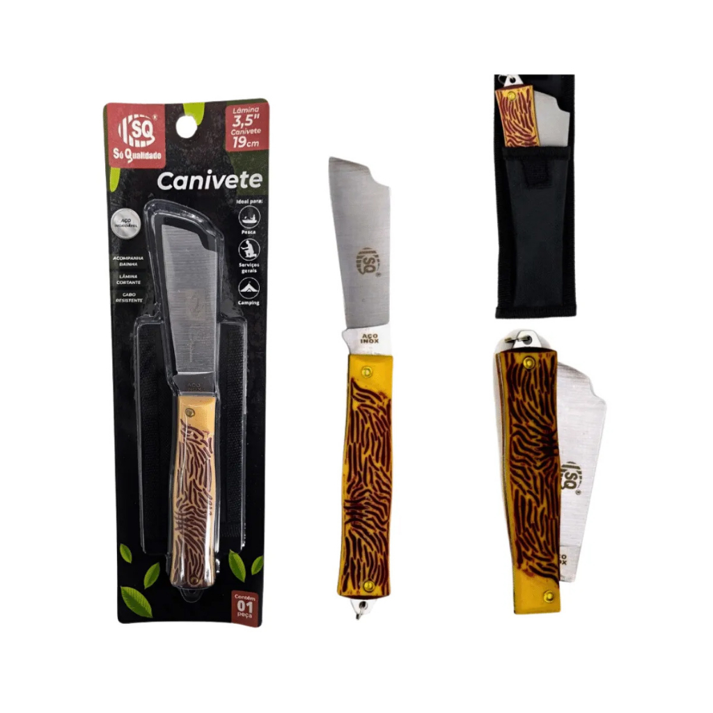 Canivete Aço Inox de Bolso Pesca Camping Pica Fumo com Bainha Multiuso