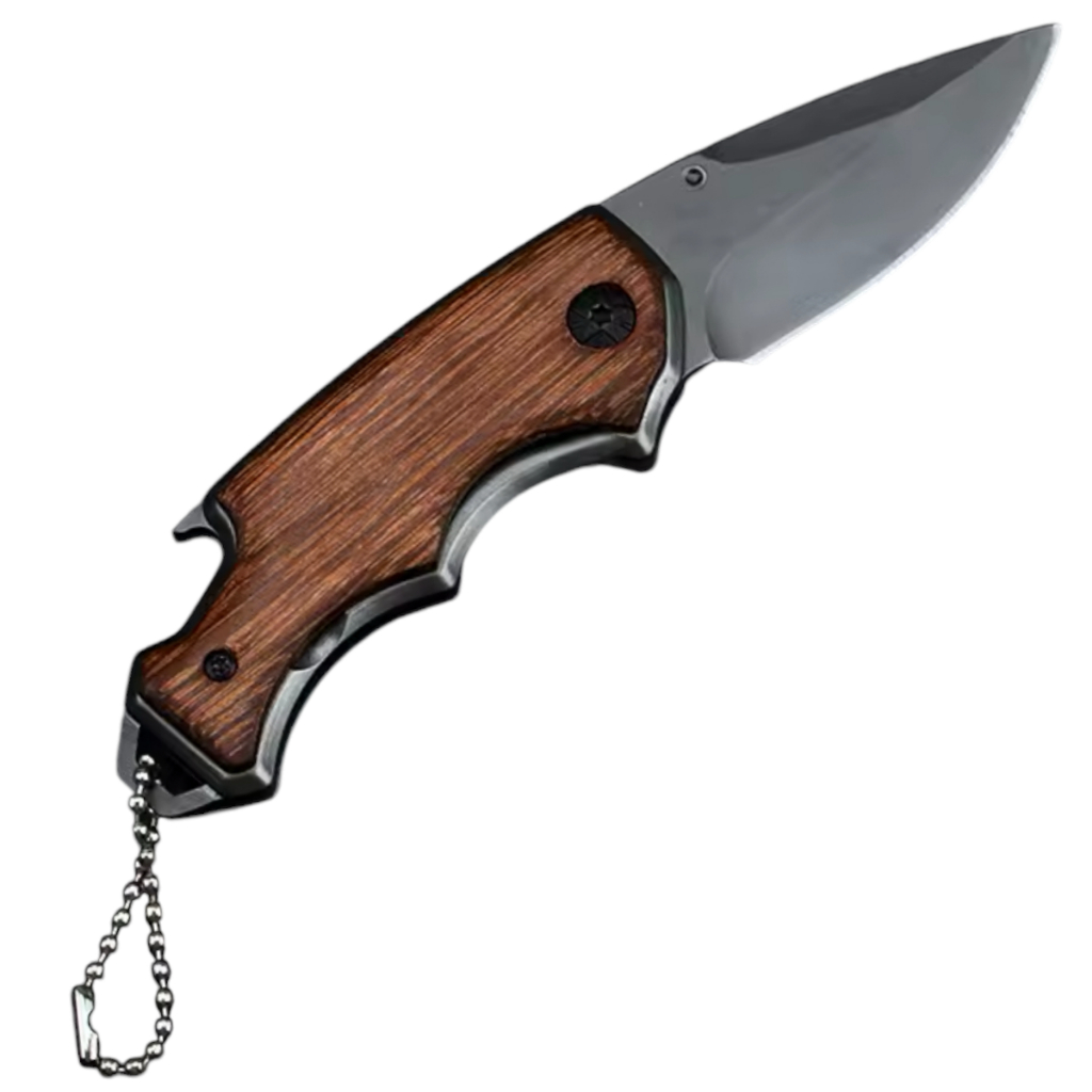 Mini Canivete Multiuso de Bolso em Aço Com Cabo em Madeira Sandalo Chaveiro 16cm C/ Abridor