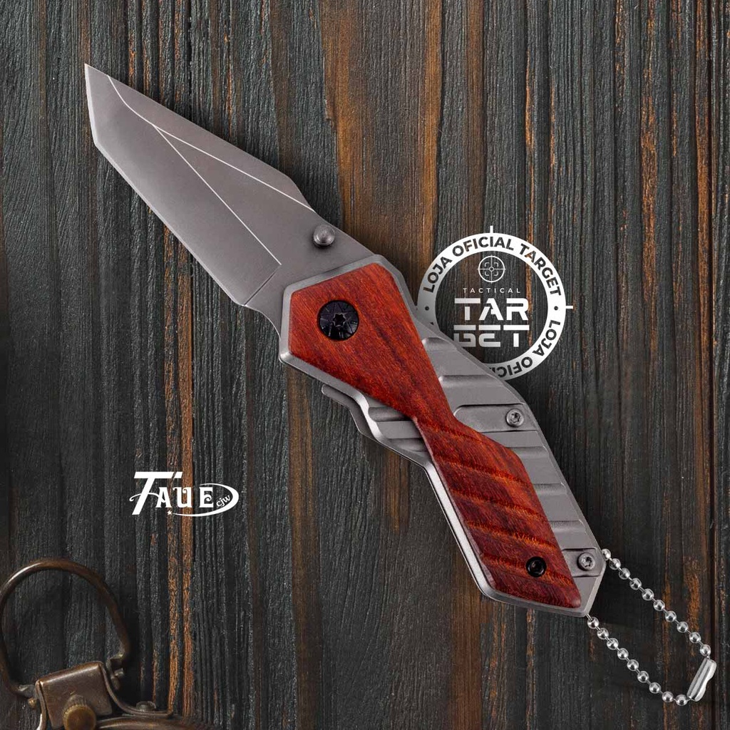 CANIVETE DE BOLSO EM AÇO CINZA GRAY COM CABO DE MADEIRA TAUE X59 TÁTICO MILITAR