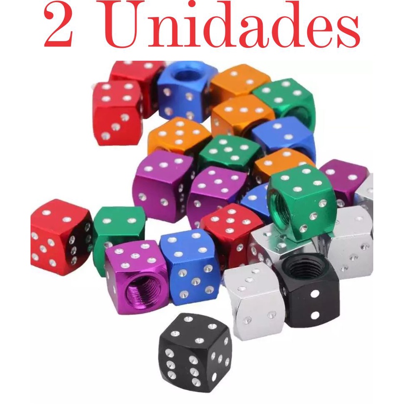 Kit 2 - Tampinha Bico Pneu Dado Carro Moto Bicicleta - Tampa Metal Cores Dadinho - Válvula