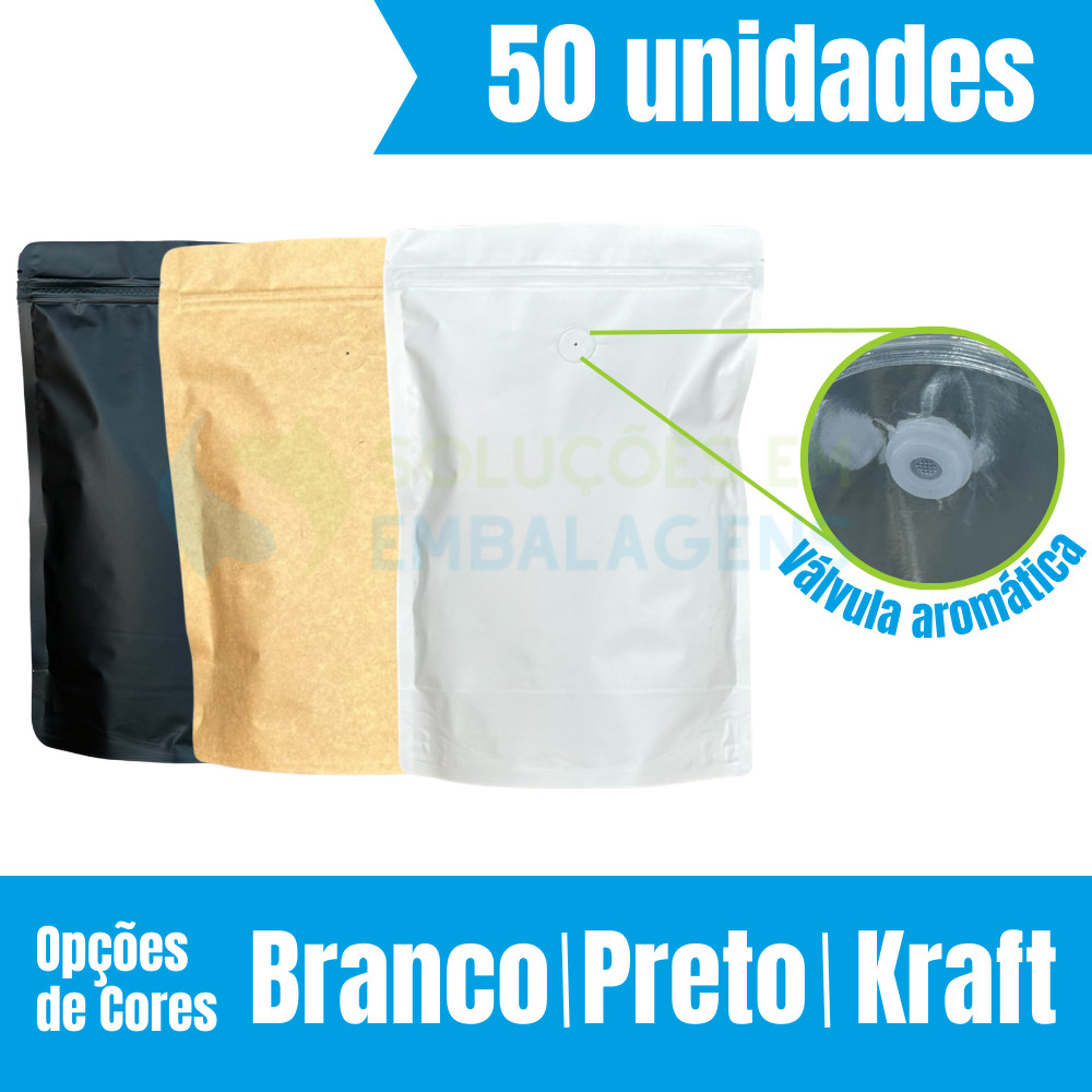 Embalagem Saco Stand Up Pouch Com Zíper e Válvula Aromática(100un)