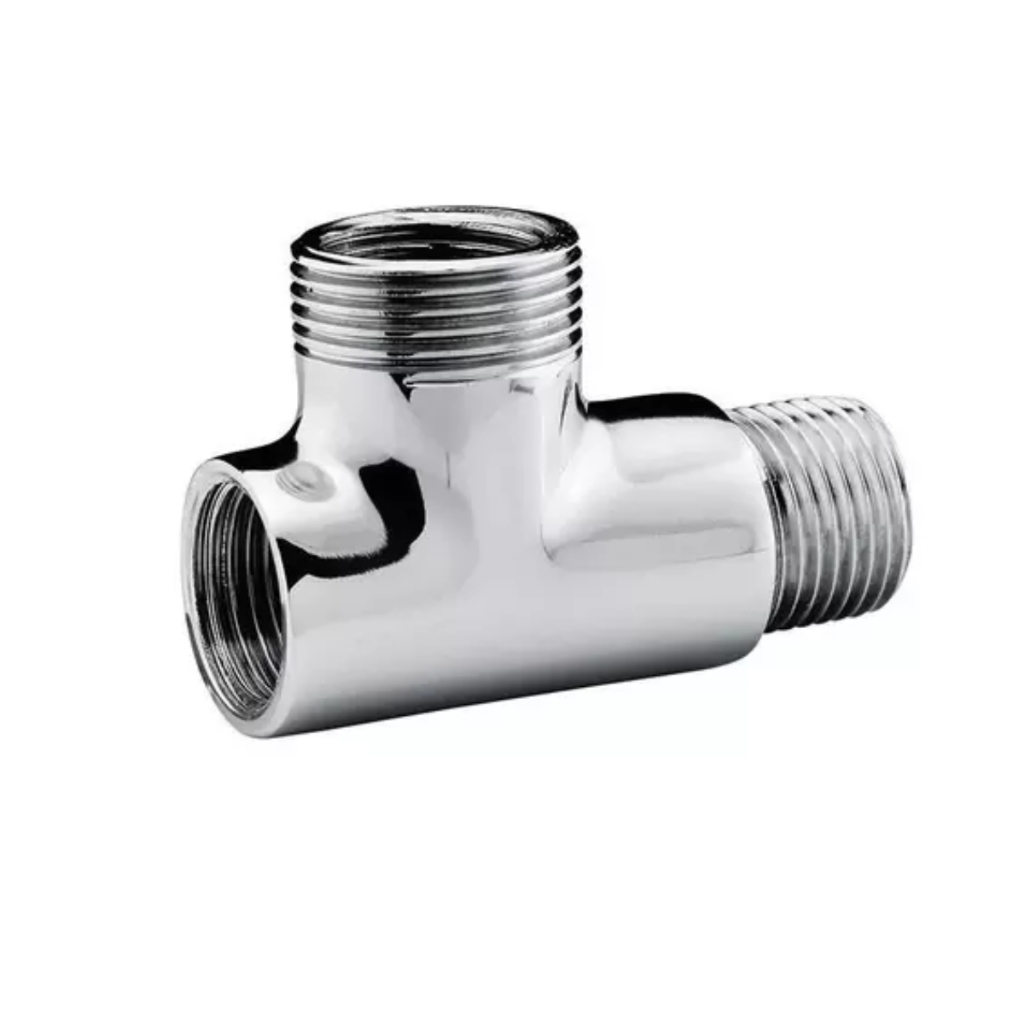 Derivação Adaptador Tee Metal Cromado De Torneira Para Máquina Lavar / Lava Louça 1/2 x 3/4