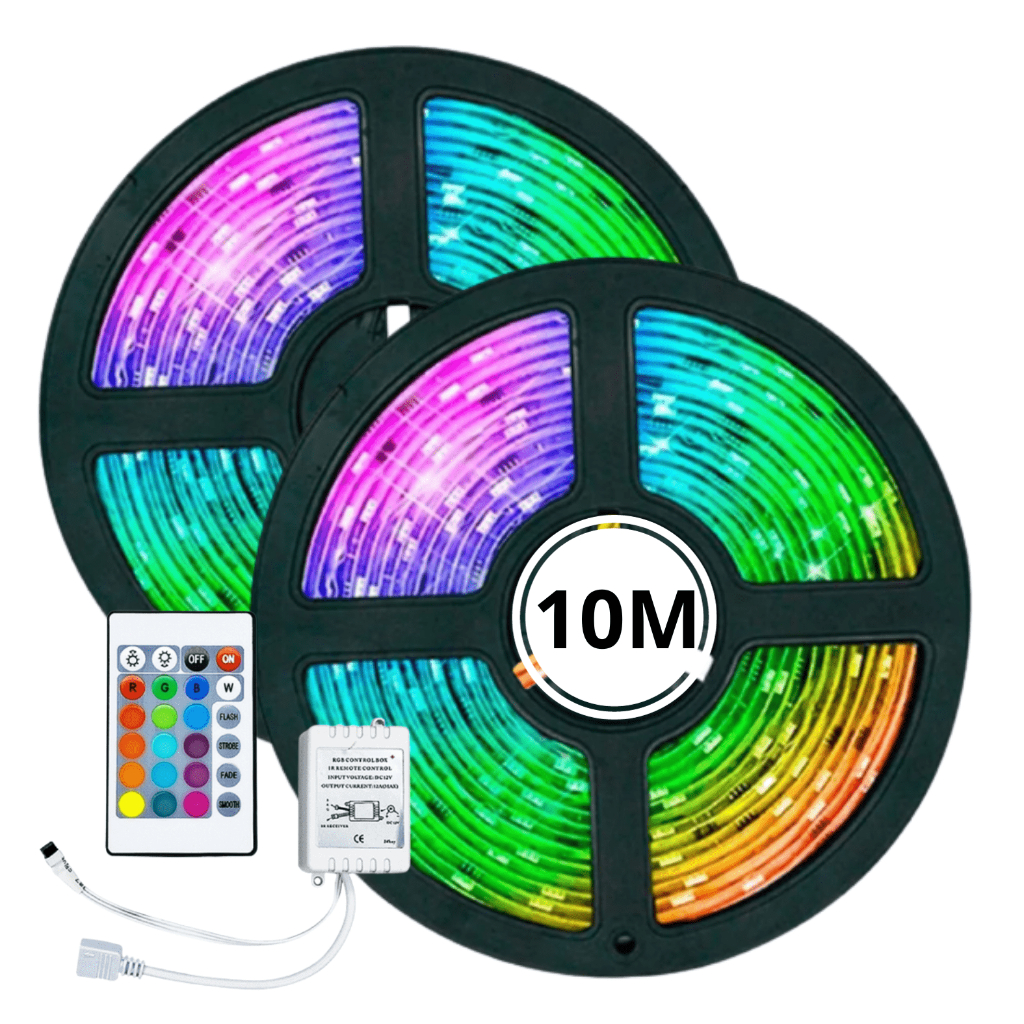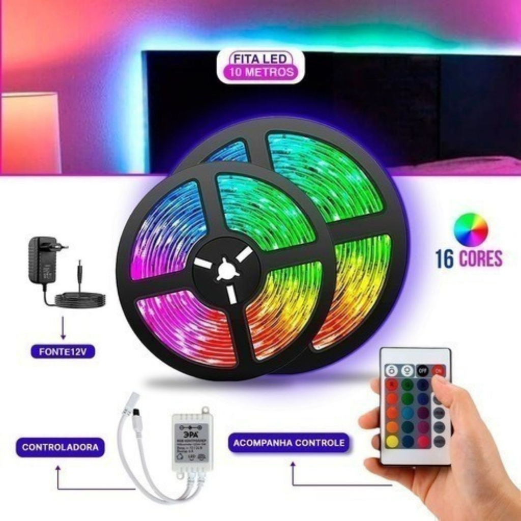 Fita Led Ultra Rgb 5050 10 Metros Com Controle Rolo 10m 16 Cores Colorida 300 Leds Aprova D'agua