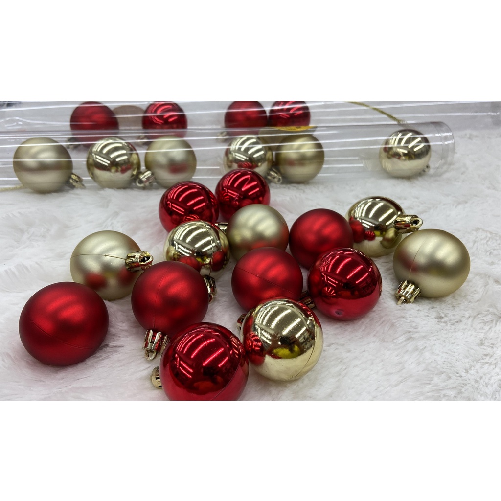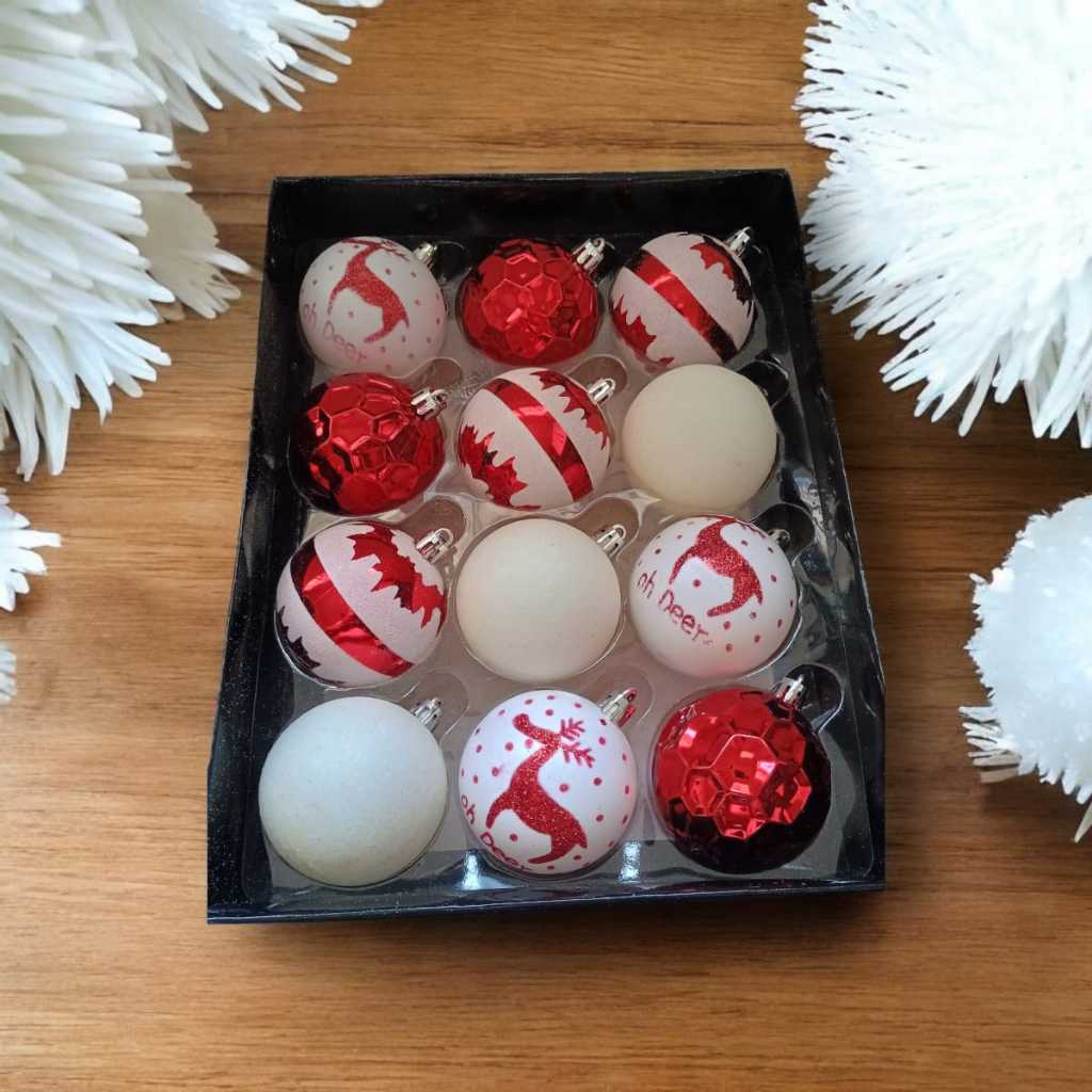 Bola de Árvore de Natal de 6cm Caixa com 12 unidades Vermelhas e Brancas