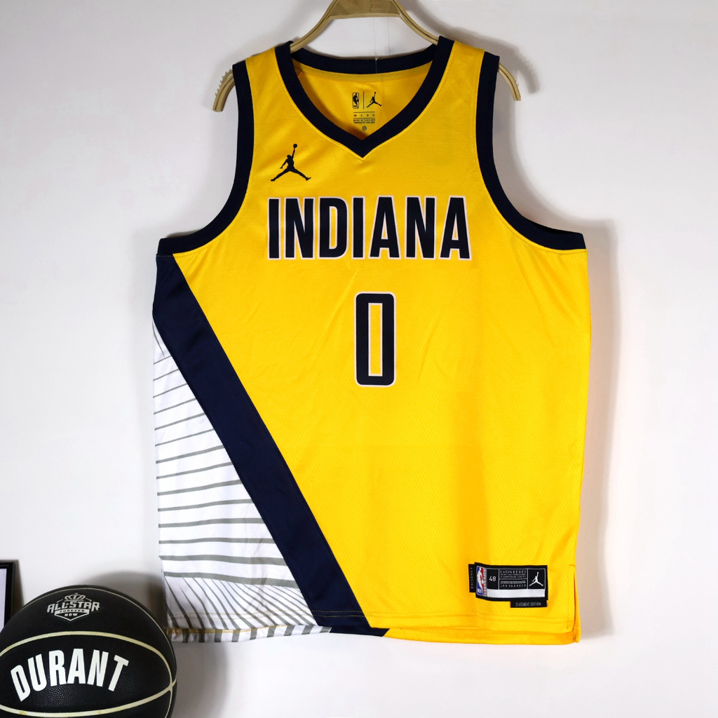 Homens Camisa 2023NBA Indiana Pacers Tyrese Haliburton Camiseta Amarelo Basquetebol Bordado Jersey