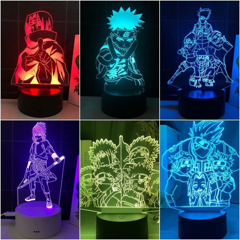 Luminária De Mesa Naruto Uzumaki Team 7 Com Claro Noturna 3D