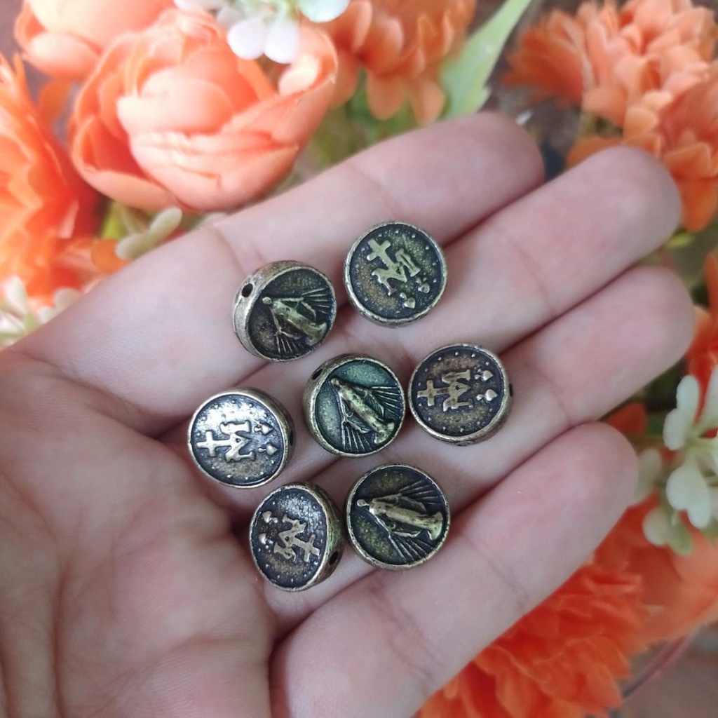 30 Passantes Nossa Senhora das Graças Ouro Velho - Medalha com furo passante NS das Graças