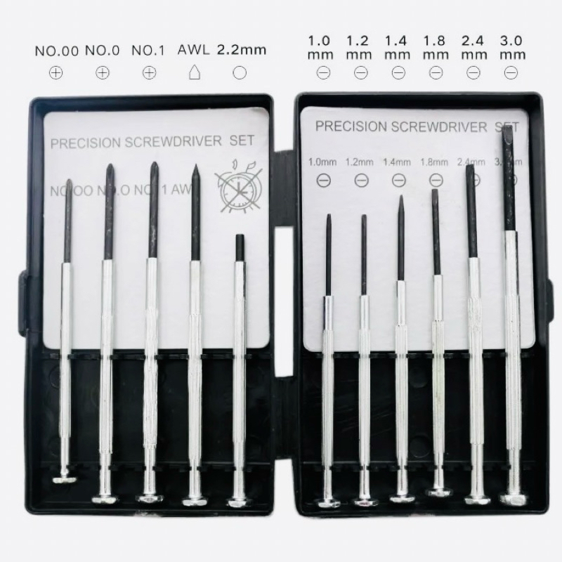 Kit Jogo Chaves De Precisão Relogio / Eletrônica Reparo Conserto Celular 11 Peças Fenda Philips Para Relogio - Fertak Tools