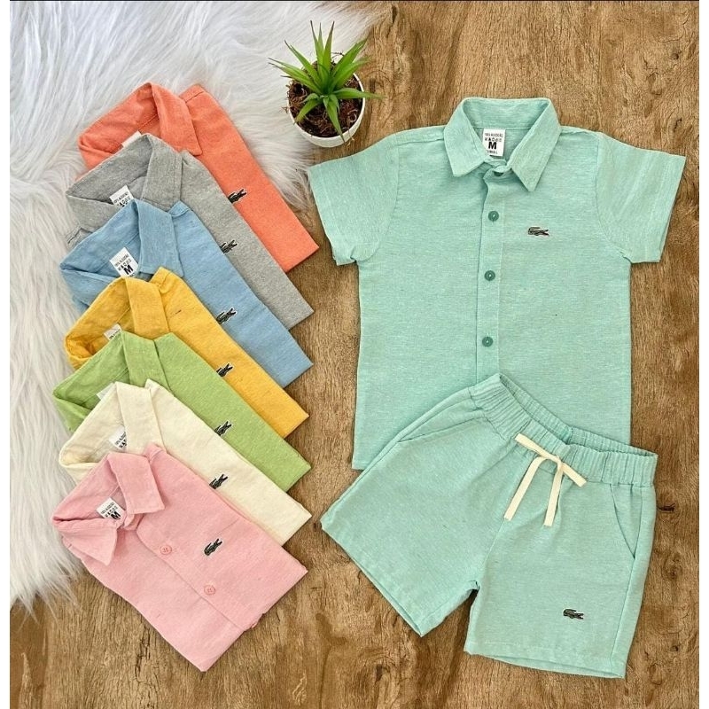 Conjunto masculino infantil bebe menino roupa de criança bermuda e camisa blusa de manga tamanho 1 2 3 4 6 8