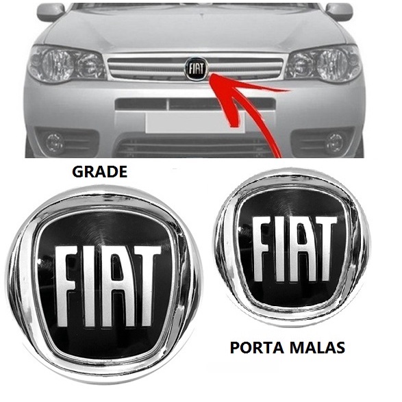 Kit emblemas Grade e Porta Malas Fiat Preto Black Piano PALIO 2004 até 2016 / Uno 2004 até 2013 Fire Mille Celebration Way Economy Logotipo Simbolo