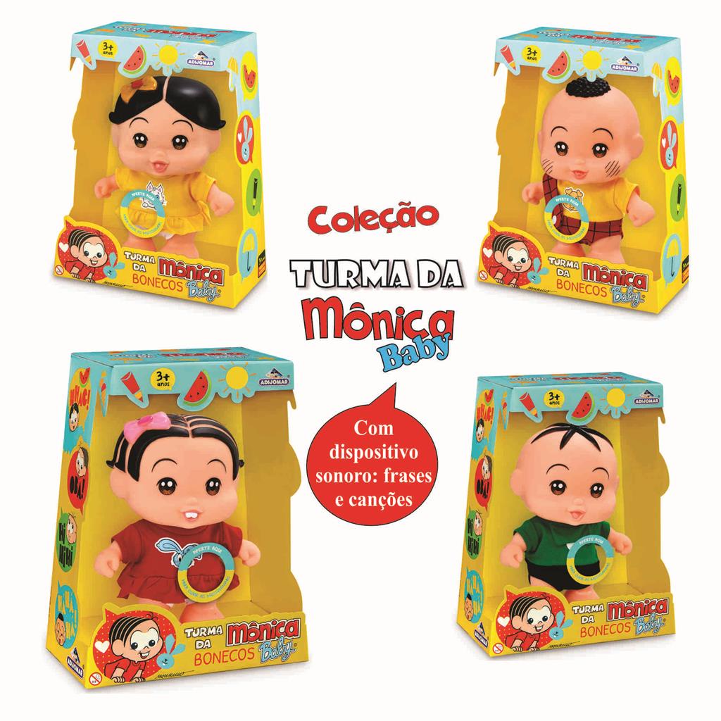 Kit Bonecos Turma da Monica Baby Magali Cascão e Cebolinha com Som Fala Frases Adijomar Brinquedo Menina Menino