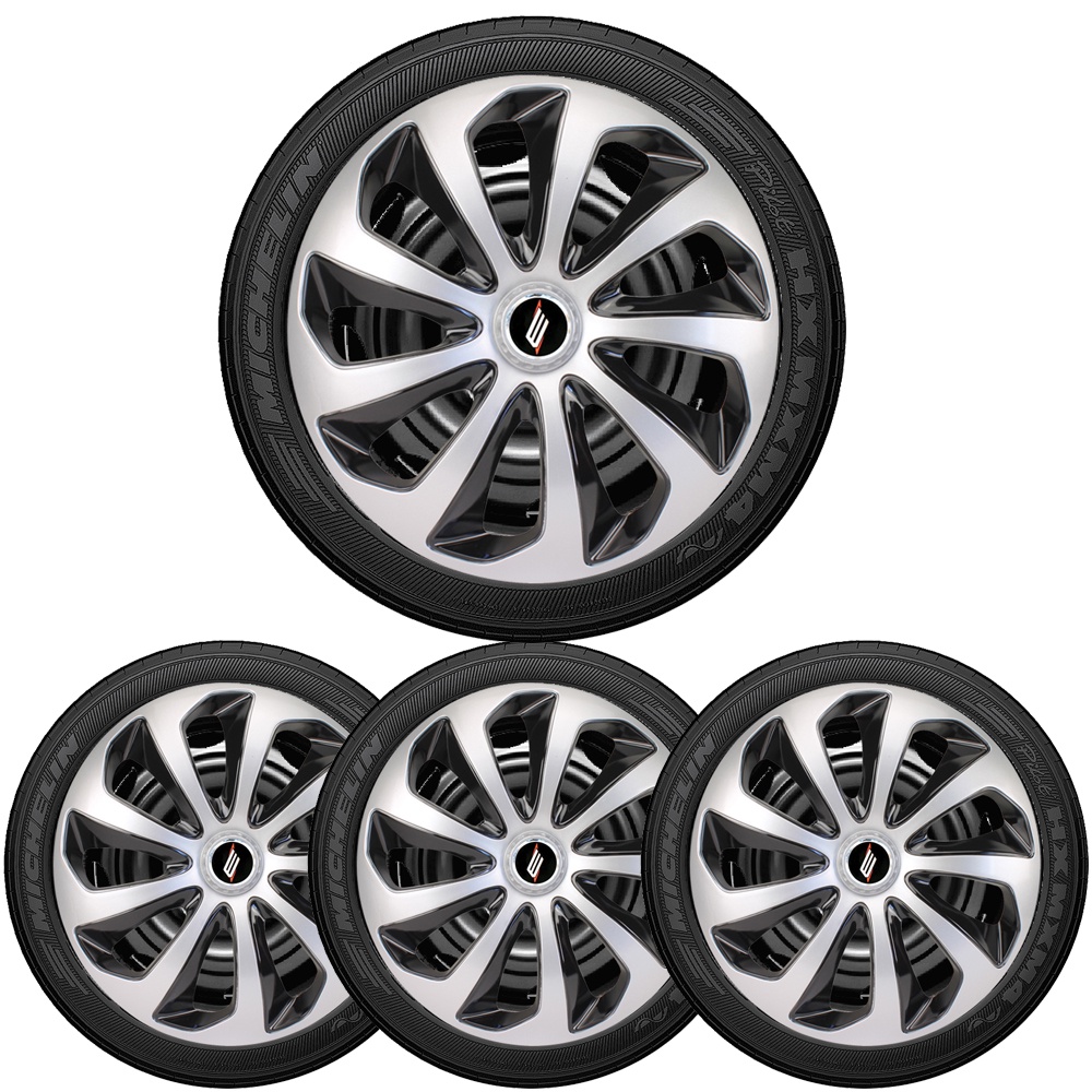 Jogo 4 Calotas Ds4 Aro 14/15 Preta Prata Gm Chevrolet Celta Onix Prisma Corsa Cobalt